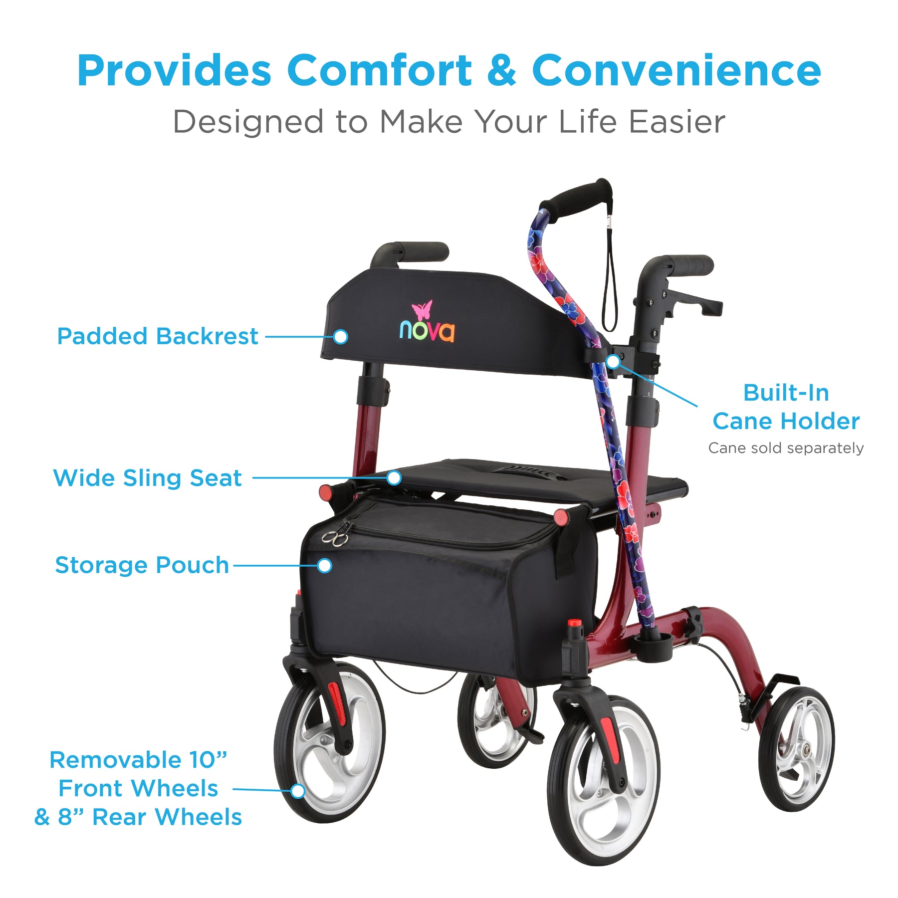 - COMES WITH A CANE HOLDER ATTACHMENT so you can keep your cane close by and with your EXPRESS Rollator. (Cane not Included)